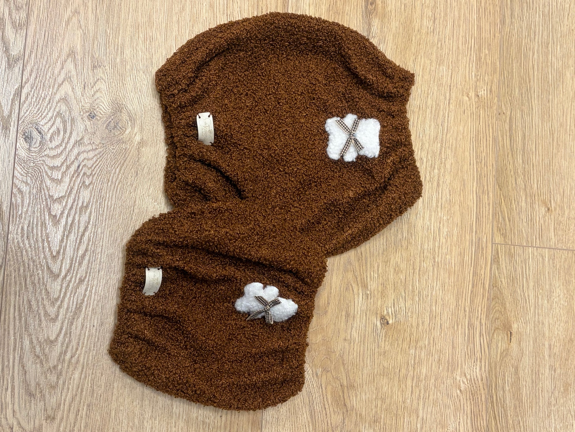 🐶 Paraorecchie in Tessuto Teddy Marrone per Cani – Scaldacollo Caldo e Morbido 🧸