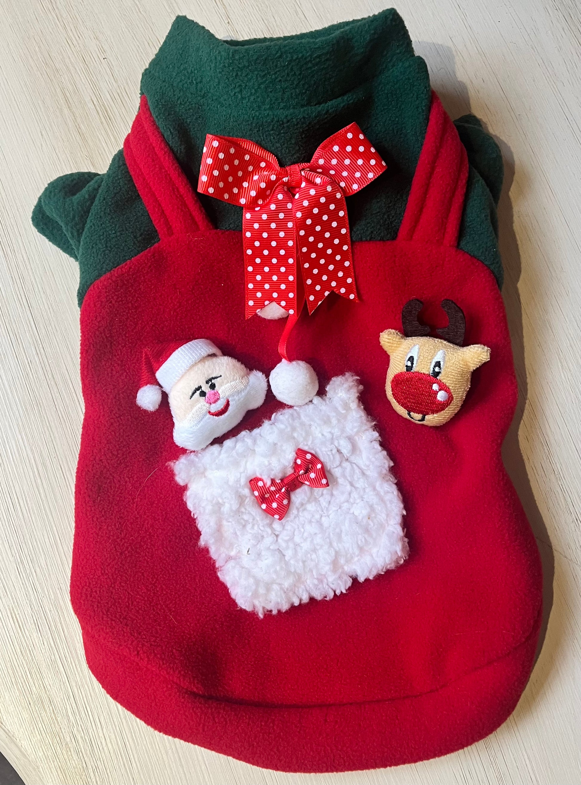 Perfetta per piccoli cani, combina stile, comfort e praticità, ideale per passeggiate, feste e foto natalizie.